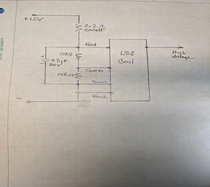 Using just 3 resistors, a GM LS2 engine coil and a capacitor, I created a pretty nasty buzz coil. By nasty I mean a much longer arc and a much faster spark rate than the old Model T type buzz coil. After building one for Jim and one for myself, I put the project on the shelf. In fact, never expecting to return to it I threw the schematic away. Recently however on an engine website the complex 555 timer system came up again. That inspired me to find out how Jim’s was doing. Turns out he has been using it for 4 years without a problem. Those things together with Evac 1 being so inexpensive and simple I thought it was time to get it back off the shelf and try to remember the resistor and capacitor values. One key point, is that it uses no pesky expensive semiconductors (transistors, integrated circuits, diodes, etc.) that can be put in backwards and blow up.