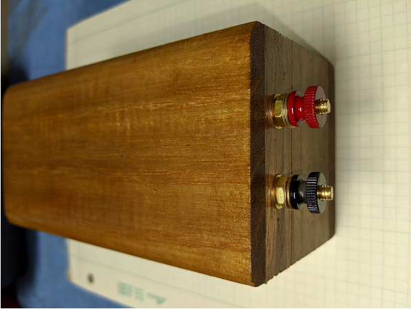 Once completed you will notice some differences between a Model T buzz coil and Evac 1. Generally, Evac 1 will throw a spark 2x longer than a buzz coil, sometimes up to 3/8 of an inch. Both take about 2mS from power on till the first spark. After the first spark, however, the buzz coil typically throws 500 sparks per second while Evac 1 throws 4000 per second. The buzz coil buzzes while Evac 1 howls. Also, a buzz coil generally doesn’t care which battery terminal is positive but Evac 1 does so I have colored the thumb nuts (red for positive).