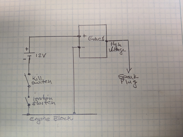 Sometimes connection to a sparkplug engine can be confusing. Figure 8 is the connection used by John Deere on their sparkplug engines (12V rather than 6V, Evac 1 rather than buzz coil).