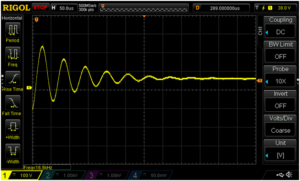 Figure 12A. Wico EK voltage on the coil with a small 0.06µF capacitor. Vertical scale 100V per box, horizontal 50µs per box.