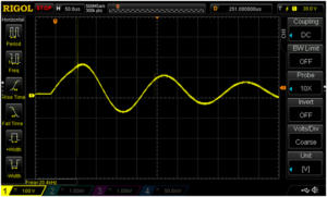 Now we can begin to answer the question of whether or not the 1949 Chevy capacitor can be used to get the Clinton running. As the value of the capacitor is lowered, similar to reducing the water tank diameter, both the voltage and frequency of the oscillation will increase. Conversely, if the capacitor size is increased the voltage and frequency of the oscillation go down. Nothing else changes. Figure 12A and12B compare the voltage and frequency of a Wico EK magneto with 0.06µF and a 0.78µF capacitor. The larger capacitor, Figure 12B, clearly has less amplitude and is a lower frequency.