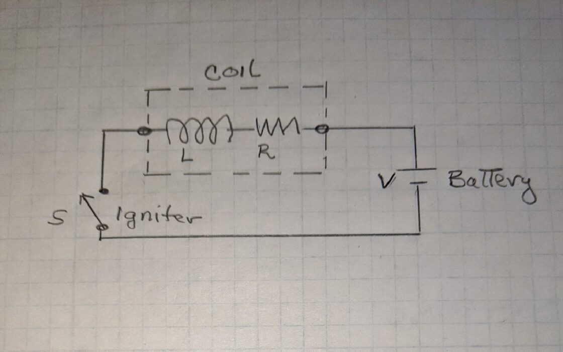 We have some take away points here. First, the battery is an insignificant contributor to the spark voltage when the igniter trips. The battery function is to merely get the current rolling in the coil before the igniter trips. Second, the coil current is slow to rise because it is busily converting current, voltage and time into energy and storing that energy in its magnetic field. Third, when the igniter points pop open the stored energy is converted to heat in the gap as an arc. Fourth, the energy in the coil goes up as current squared, so get the current up. Fifth, the amount of energy stored in the coil is how hot the spark is, period.