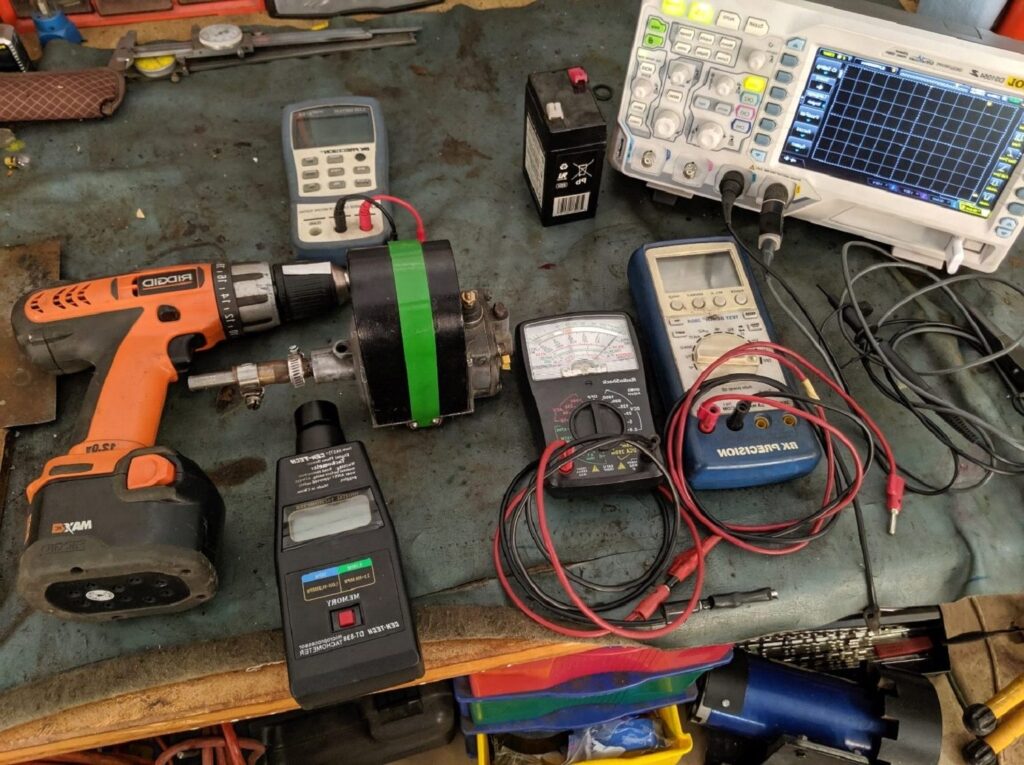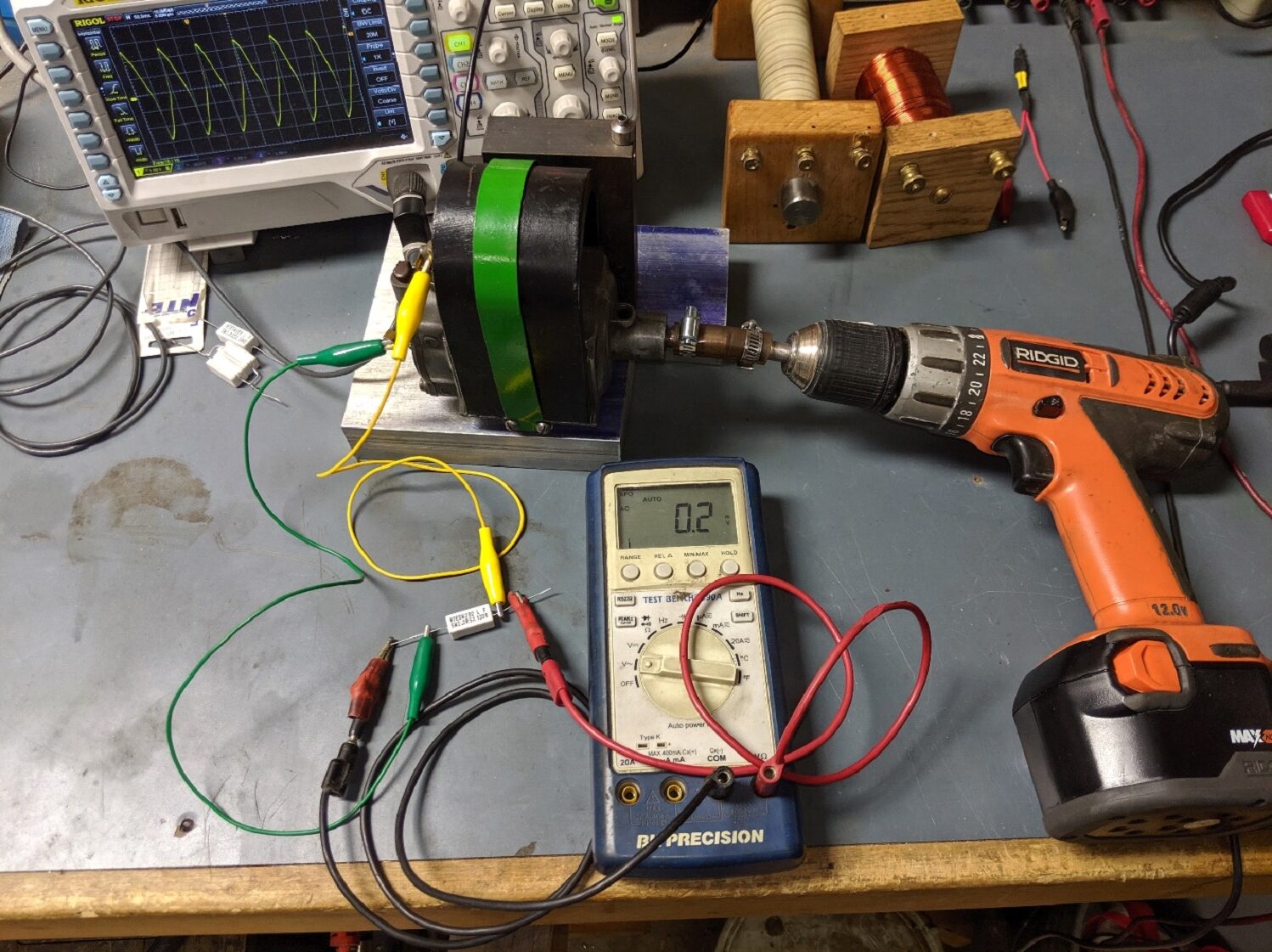 It’s best to begin with the simple coil and battery system then progress to the rotary magneto and igniter system. As seen in Figure 1-1 the equipment used to gather all the data was not exotic: Radio Shack analog multi meter, BK digital multimeter, Harbor Freight frequency meter, variable speed electric drill, rubber hose connector, 6V battery and two less common items, an LCR meter and an oscilloscope. The only tools you would need to analyze either system are a multimeter and a variable speed drill to spin a magneto.